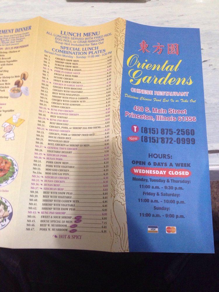 Welcome to Oriental Garden Restaurant, a beloved destination for Chinese cuisine located at 428 S Main St, Princeton, IL. Renowned for its delectable dishes and generous portions, this eatery is perfect for families, groups, and anyone craving authentic flavors. The menu proudly features favorites like the hot and sour soup, an all-time customer favorite, and various satisfying tofu and lo mein dishes that promise to delight.